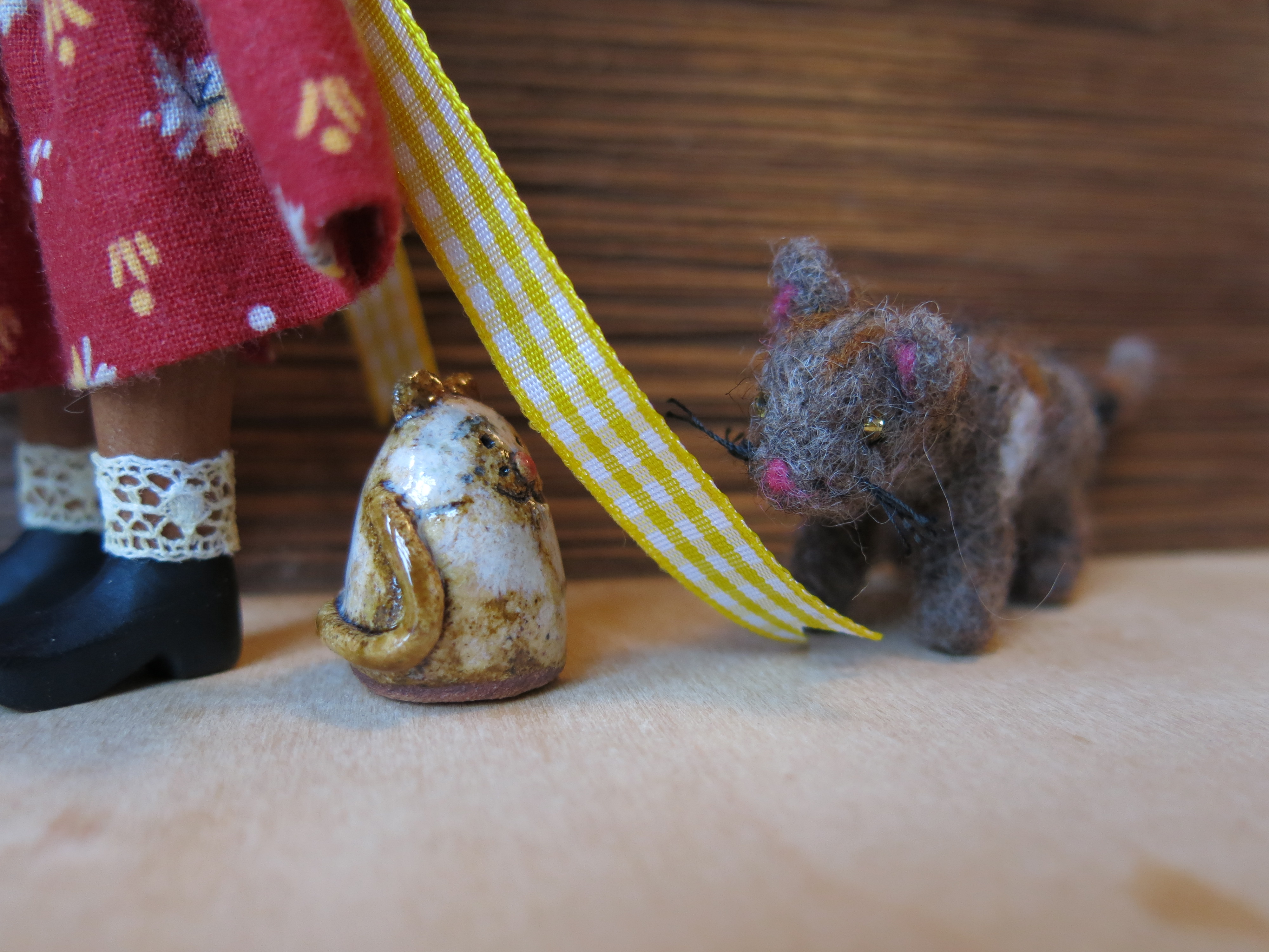 • Dithering at the bakery stopped immediately once we saw the ribbons! While they do appreciate their feline friends, Opal and Agathe are considering doing laundry to get the sausage roll smell out of the ribbons!