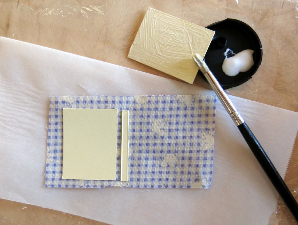 Glue them onto the wrong side of the cloth with a gap between the cover and the spine, and space all round.