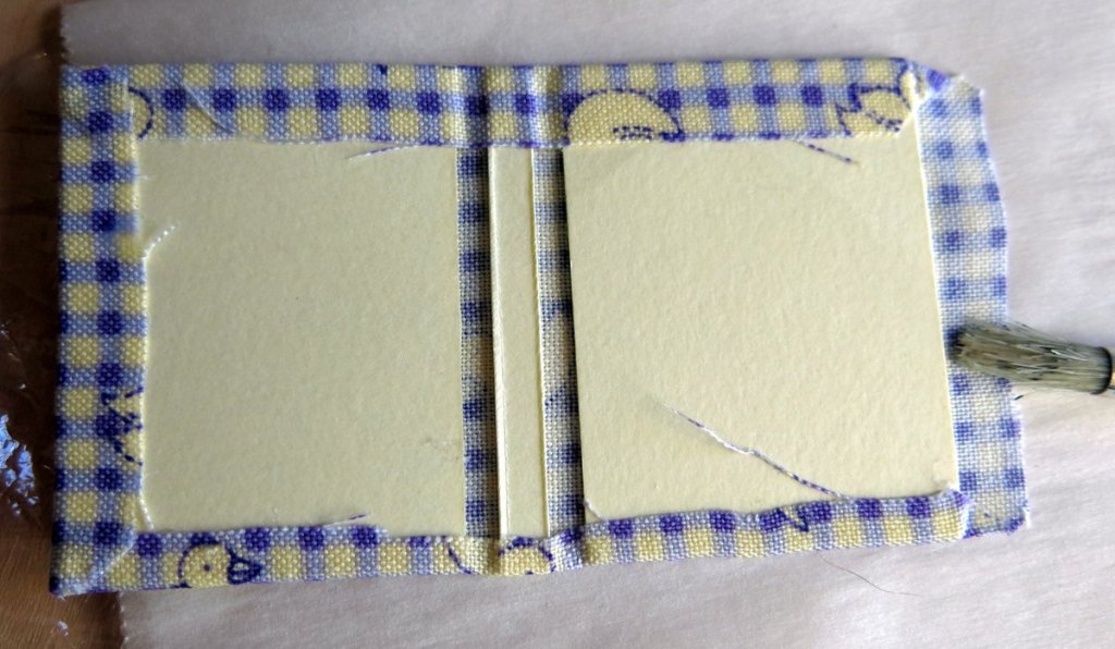 Fold over and glue the extra cloth on the inside, weight and leave to dry.