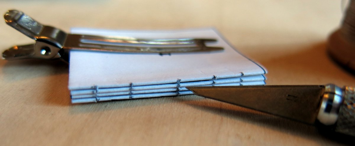 Cuts are made at each mark. You are cutting through multiple layers of paper, so make sure you cut through them all. Some people pierce with an awl instead.