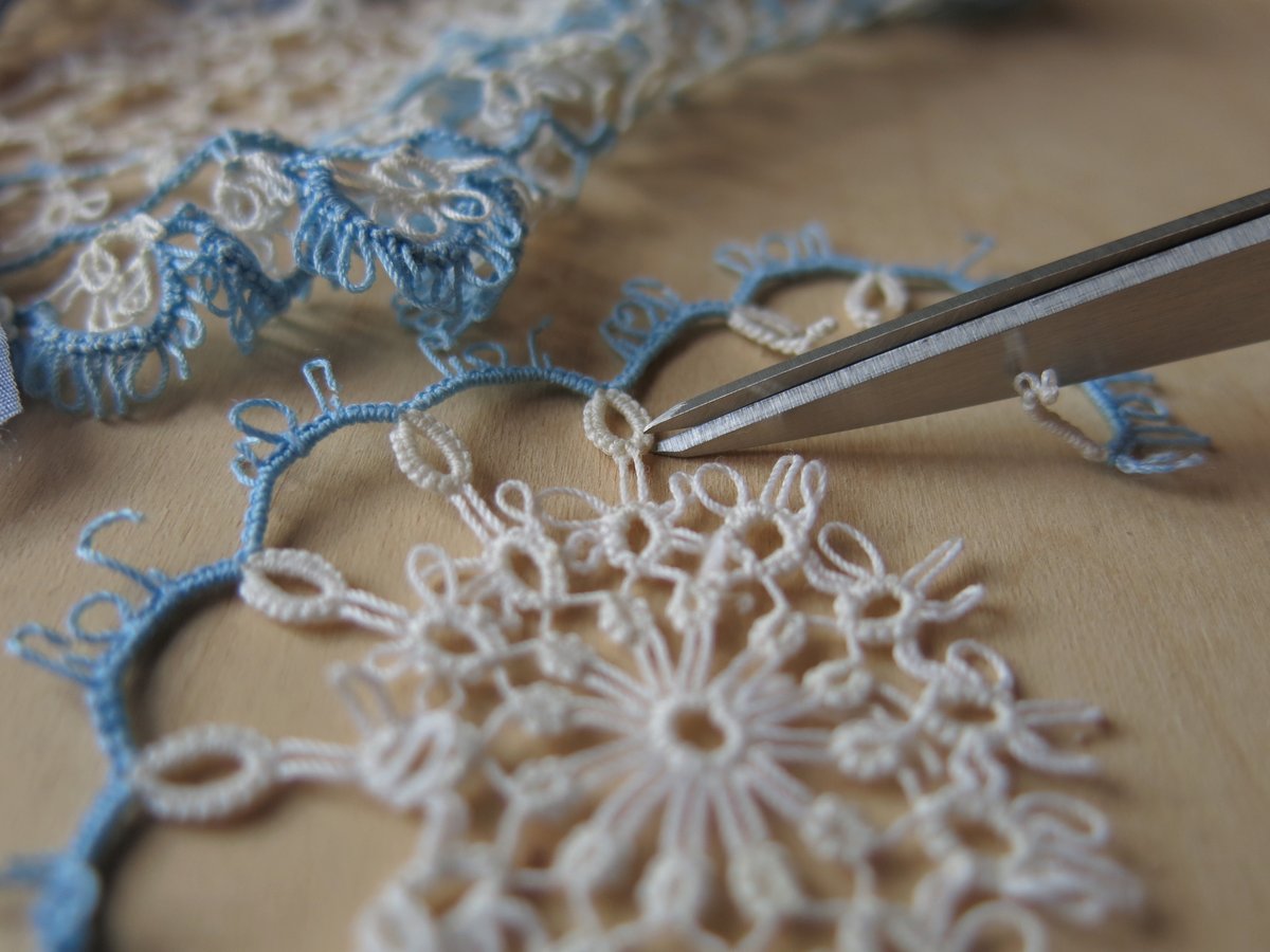• Thank you! I studied the doily carefully to see where to snip, and there was only one little string discarded (draped over the spool of thread in the last picture)! Next time I might make a circular underskirt instead of flat gathering…but Tatty and I are happy with this attempt!