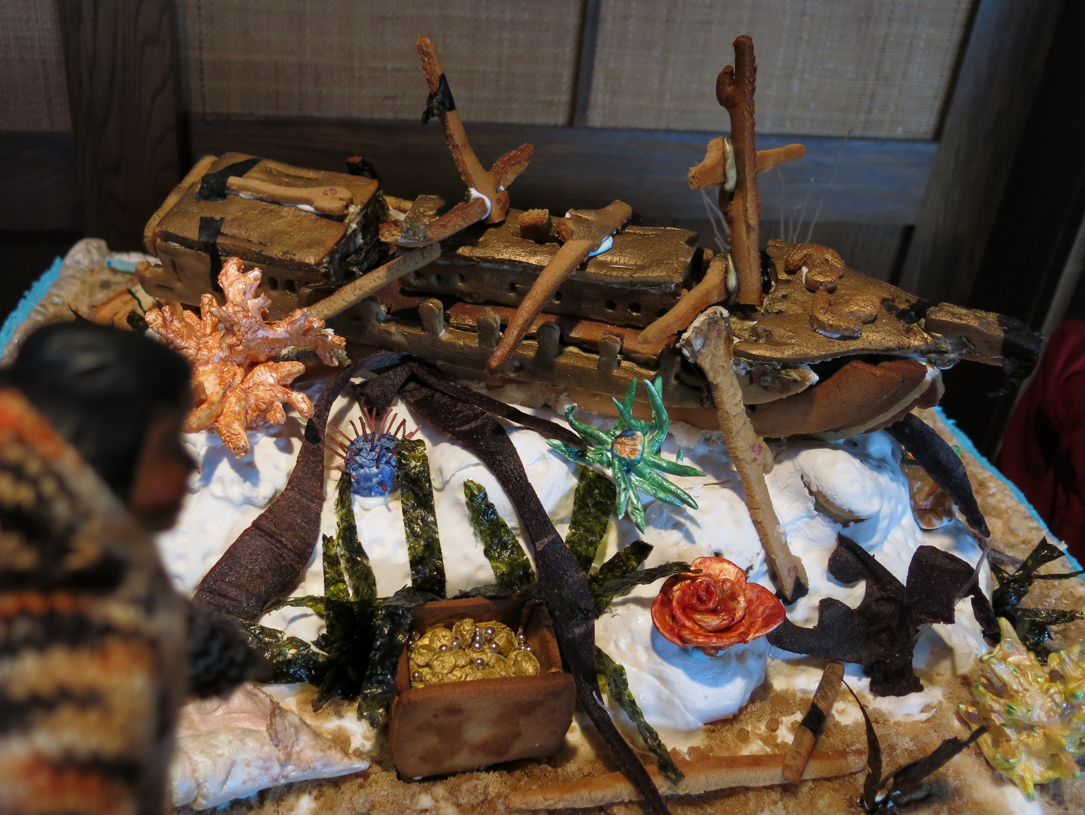 Opal would like to have gotten a little closer to the gingerbread shipwreck (and its pirate chest of gold!)