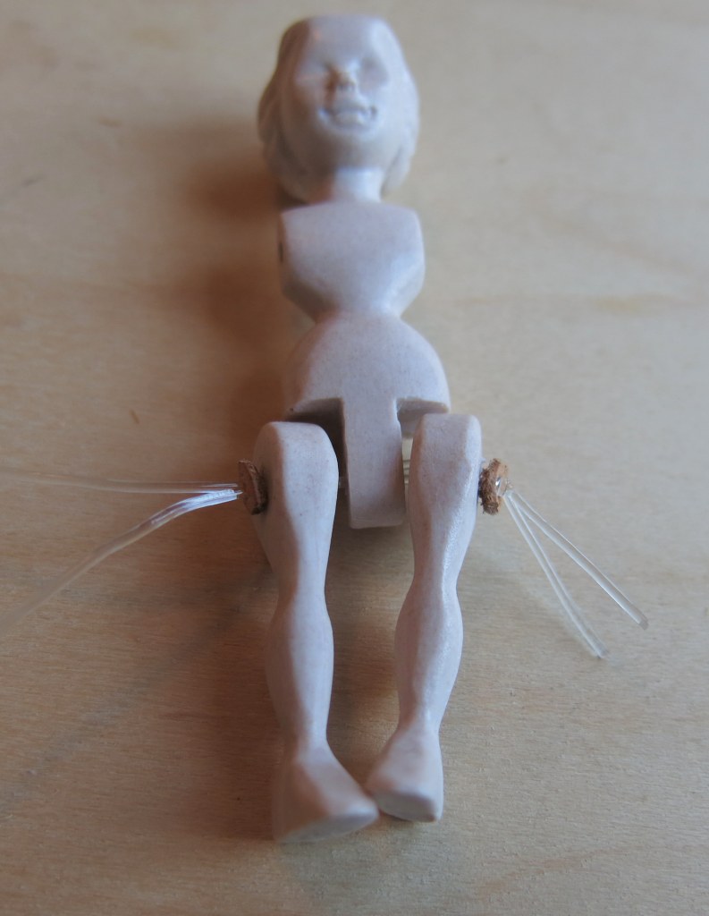 Threading goes like this: Leather disc, leg, crutch, leg, leather disc.