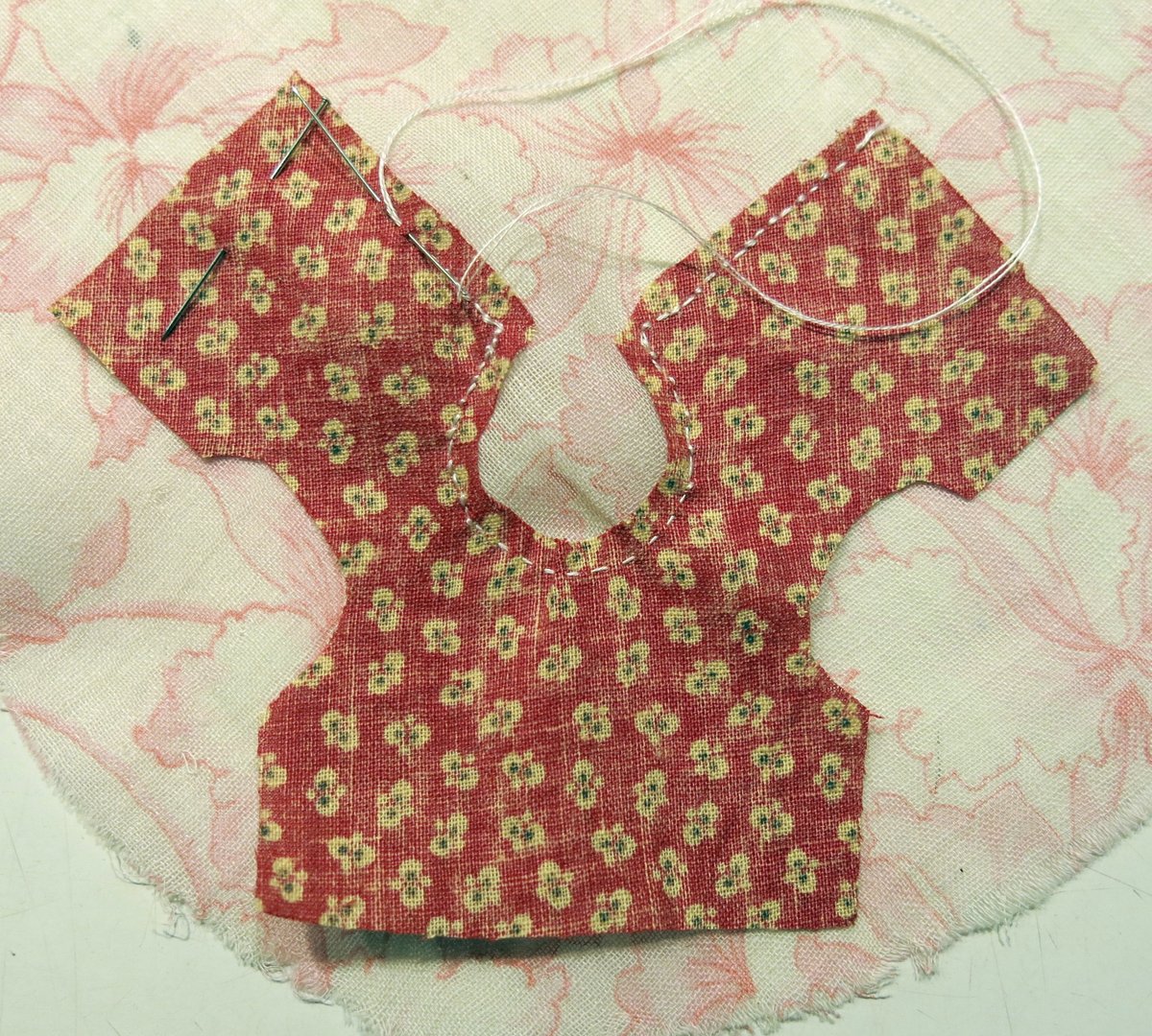 In this picture you can see several things I normally do when dolly dressmaking, all with the intention of making the dress drape and fit nicely.