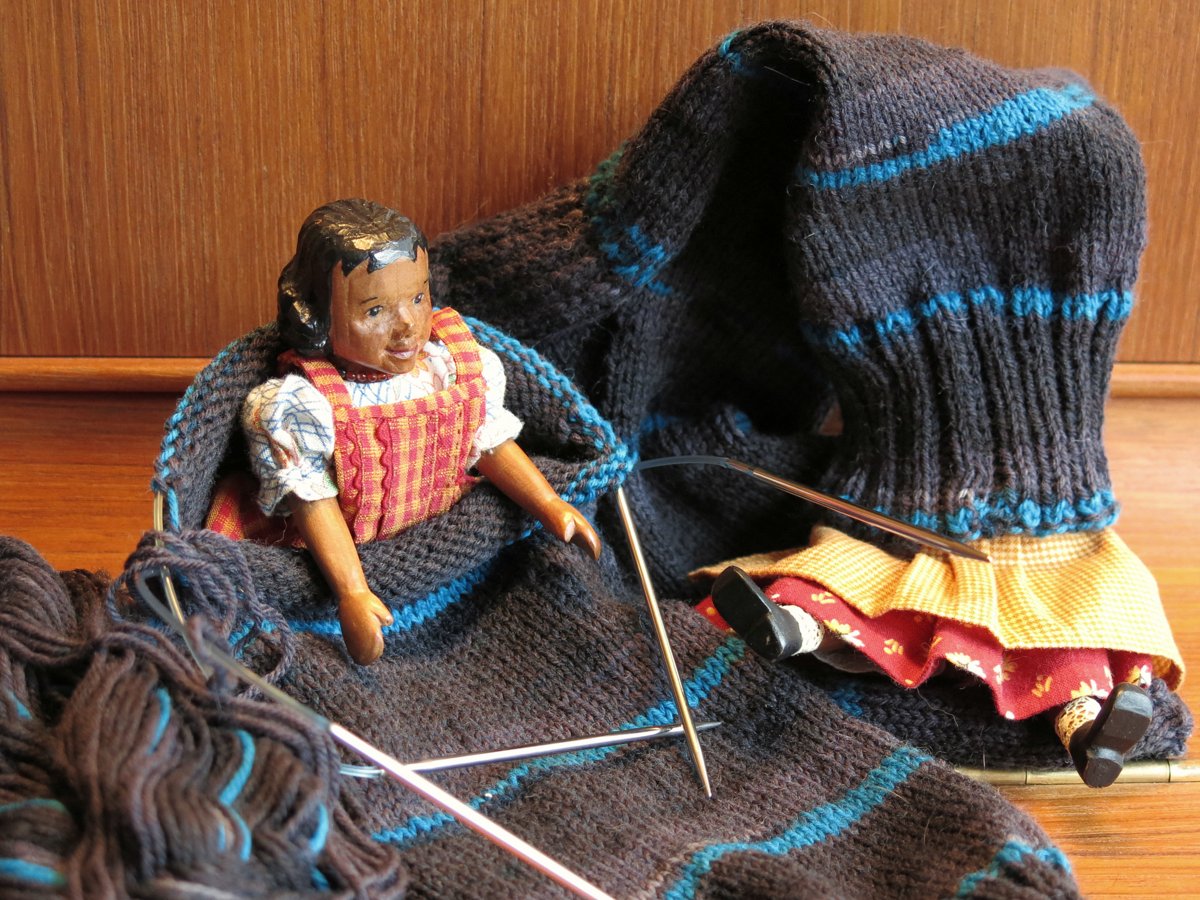 We are looking forward to the over-large shawl project too. It is a Ravelry knit-along, where you don’t know what the result is until you get there! The “sleeping bags” are almost done!
