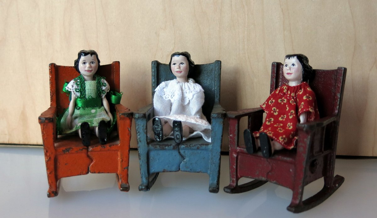 The vintage cast-iron rockers are very nice aren’t they? They are some bits of the old furniture from my mother’s dollhouse. Just right for the Half-pints.
