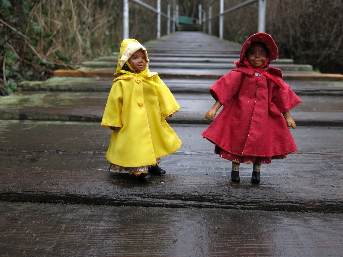 Wood, rain, coats and clouds.