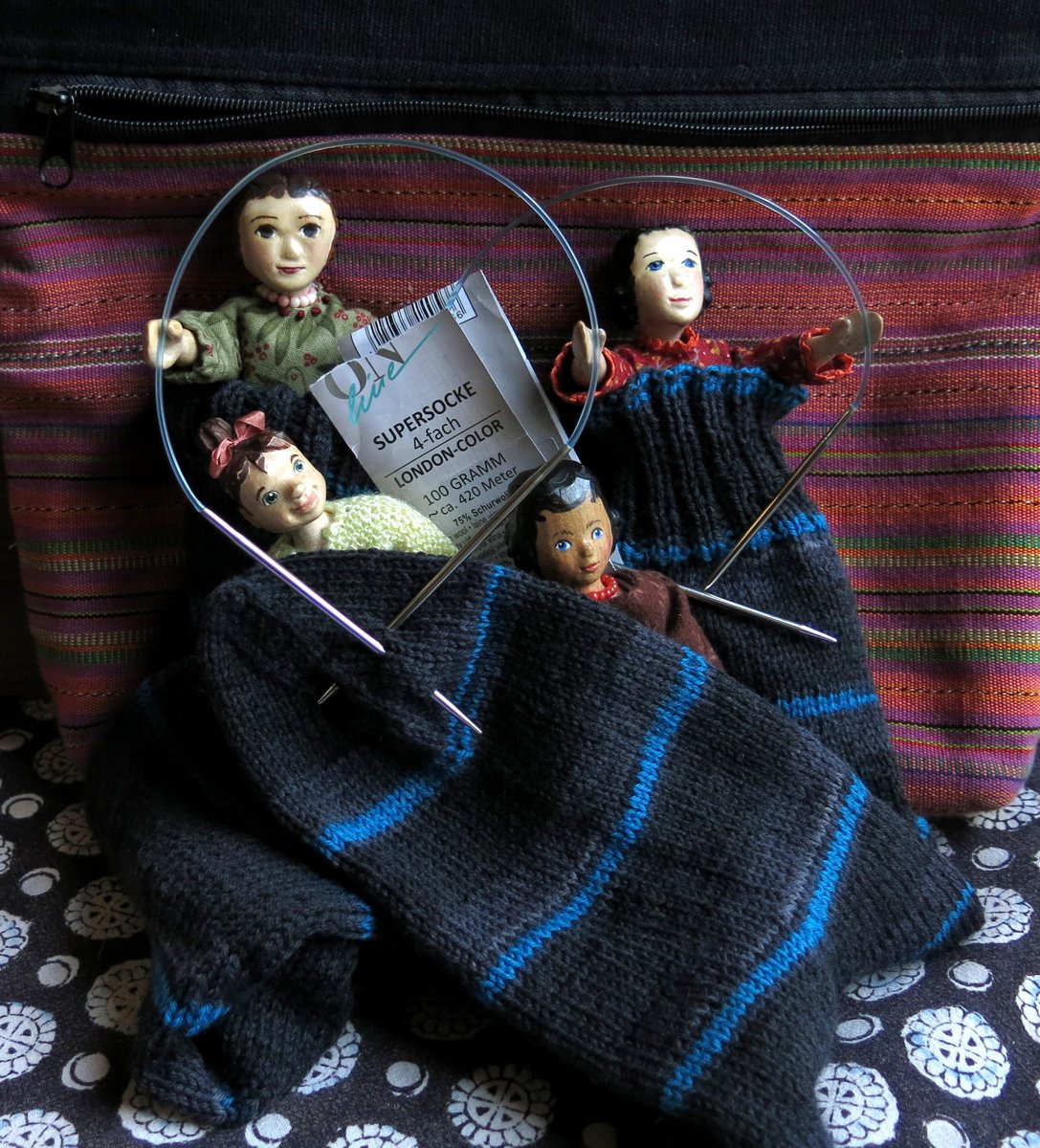 The Textile Projects are continuing to amuse us – a winter shawl is coming along… I am doing a knit-along mystery pattern from Isolde on Ravelry – you get an option of two patterns once a week, so the result at the end depends on which of the patterns you choose. I am going for the simplest patterns, and am very grateful that I have help from the genius knitting daughter of the family.  Since the Hittys noticed that it is not going to be a Hitty shawl they have been a bit disgruntled, but Rose helpfully hands me the stitch markers (with only a tiny  humph).