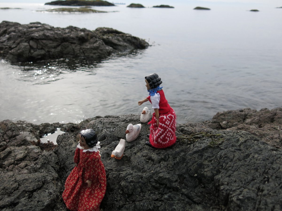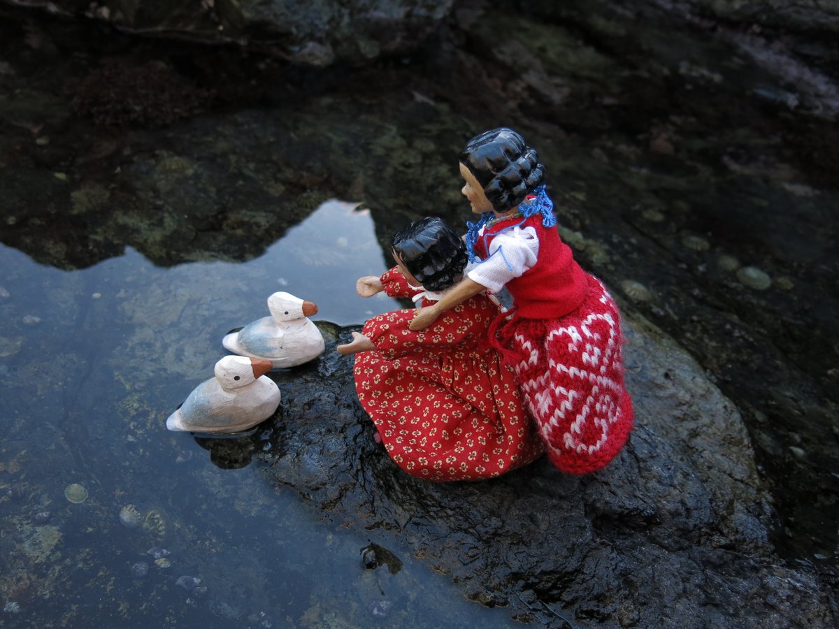 The ducks started to follow them home, but the Quimper Hitty cupboard is not set up for poultry, so Tatty shoo-ed them away.