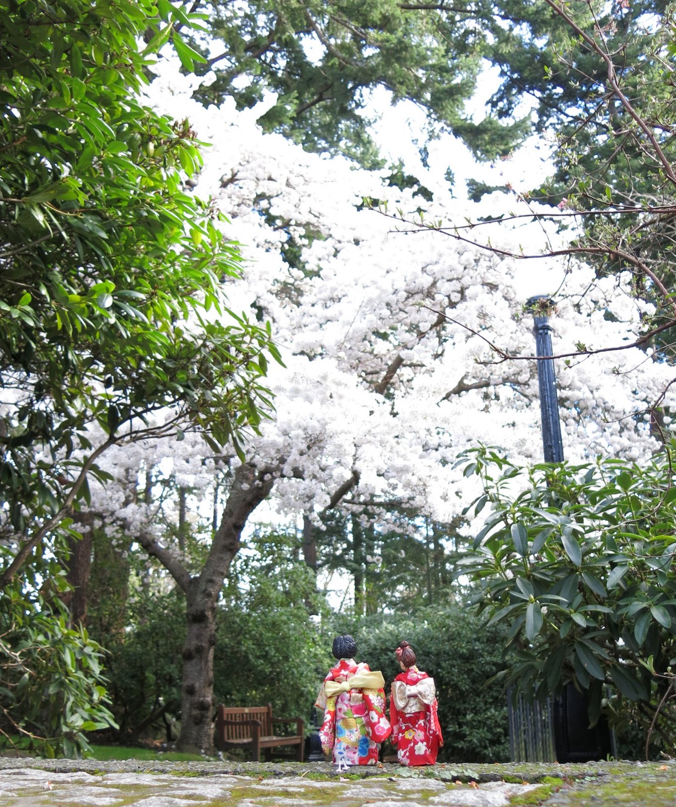 Min and Patience have put on their best Kimono to view the Cherry Blossoms.