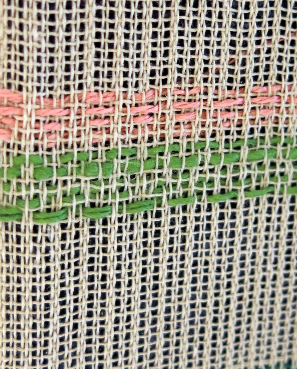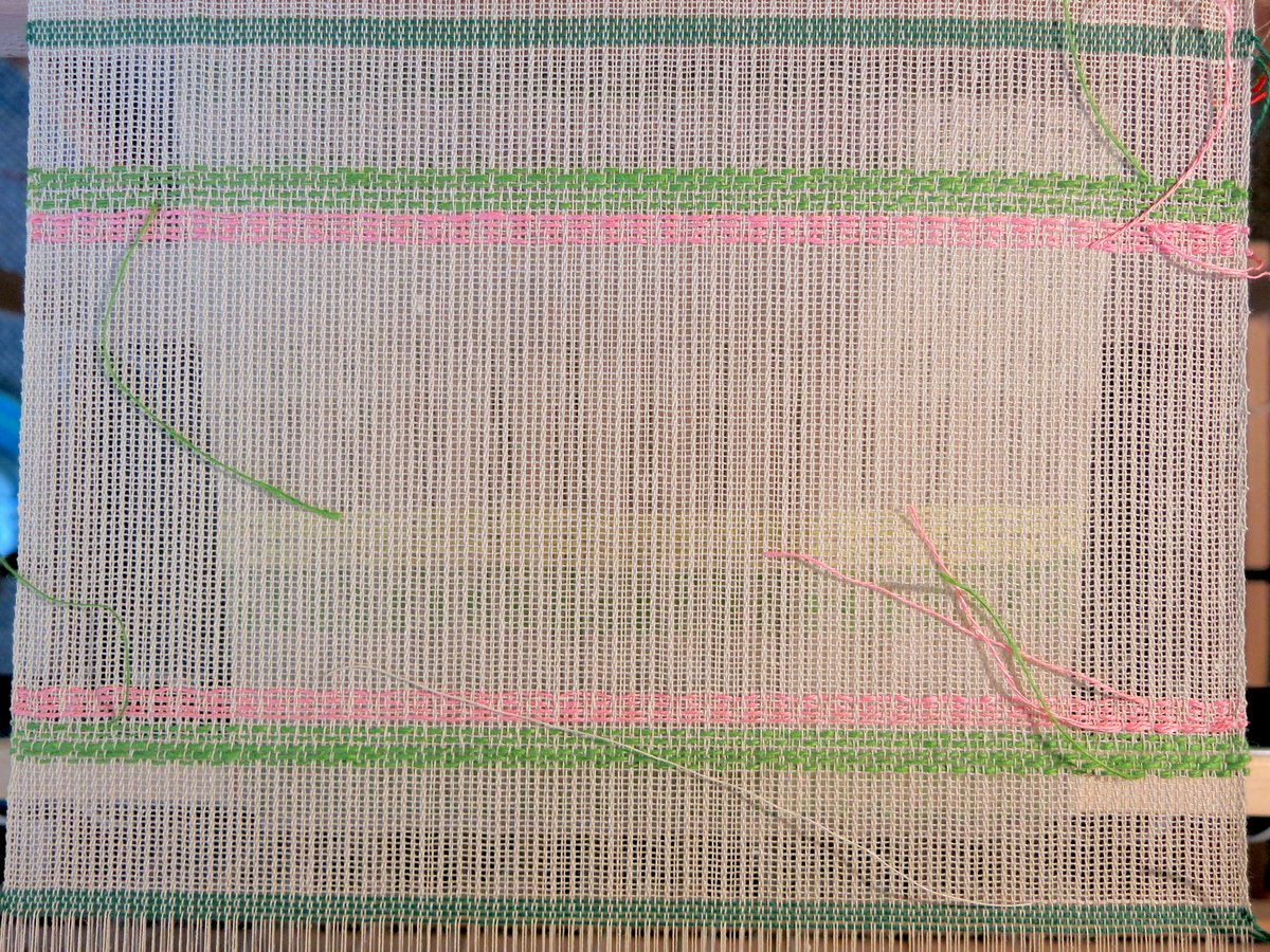 This is what it looks like to the weaver… it took a while to for us realise that the pattern is appearing on the underneath surface.