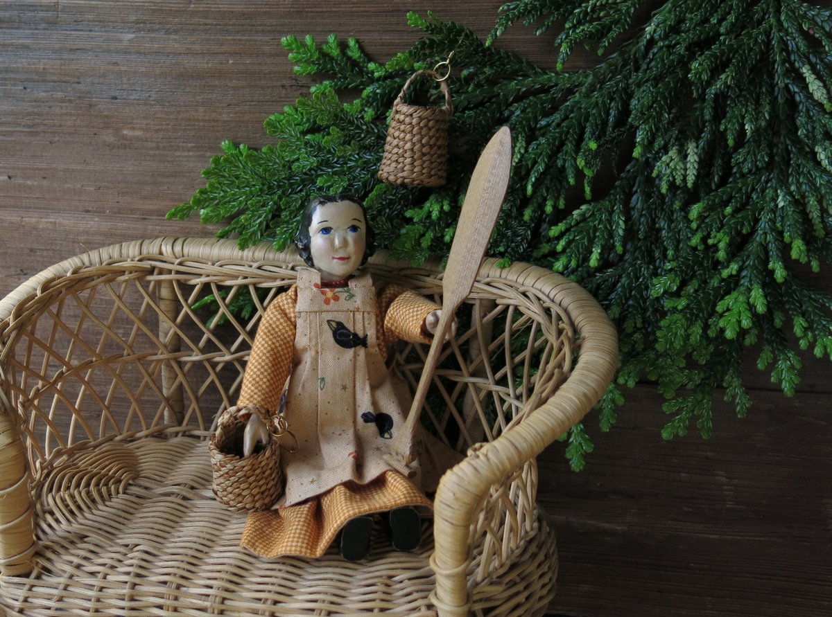 She didn’t come home with a Hitty-sized canoe, but her obliging photographer kindly bought her a wee paddle made by Leon Ridles …It’s a start!