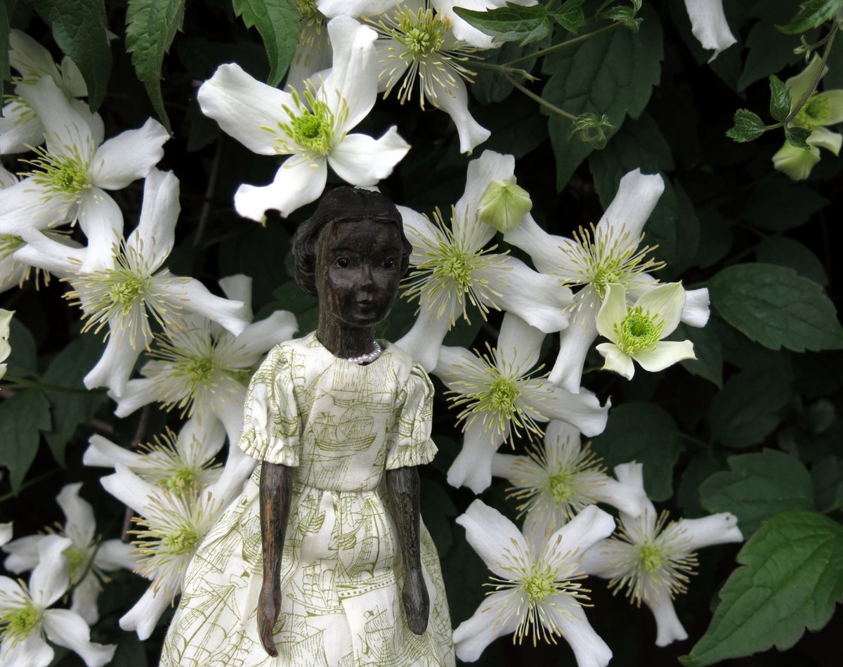 …and they admired this beautiful clematis Montana, which has a sweet scent and four perfect sepals surrounding each flower…