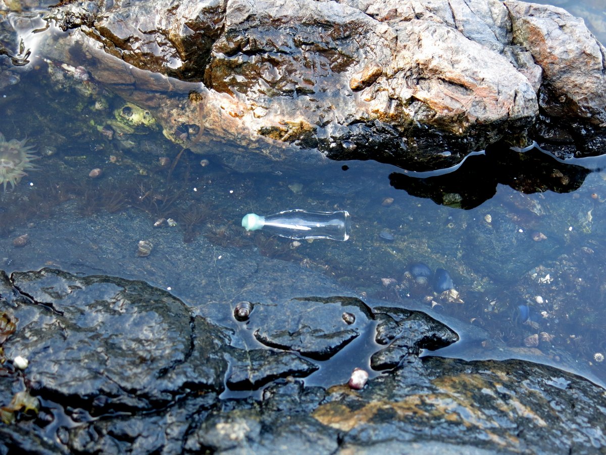 Opal, Agathe and Min discovered a mysterious bottle rolling about in a tide pool.