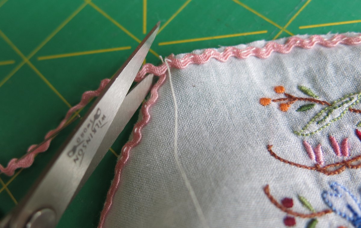 I don’t cut the rickrack until I get to the end, because I am never quite sure exactly how much I will use, and I don’t want to waste even a centimeter of the baby rickrack which is pretty old and not available around here.