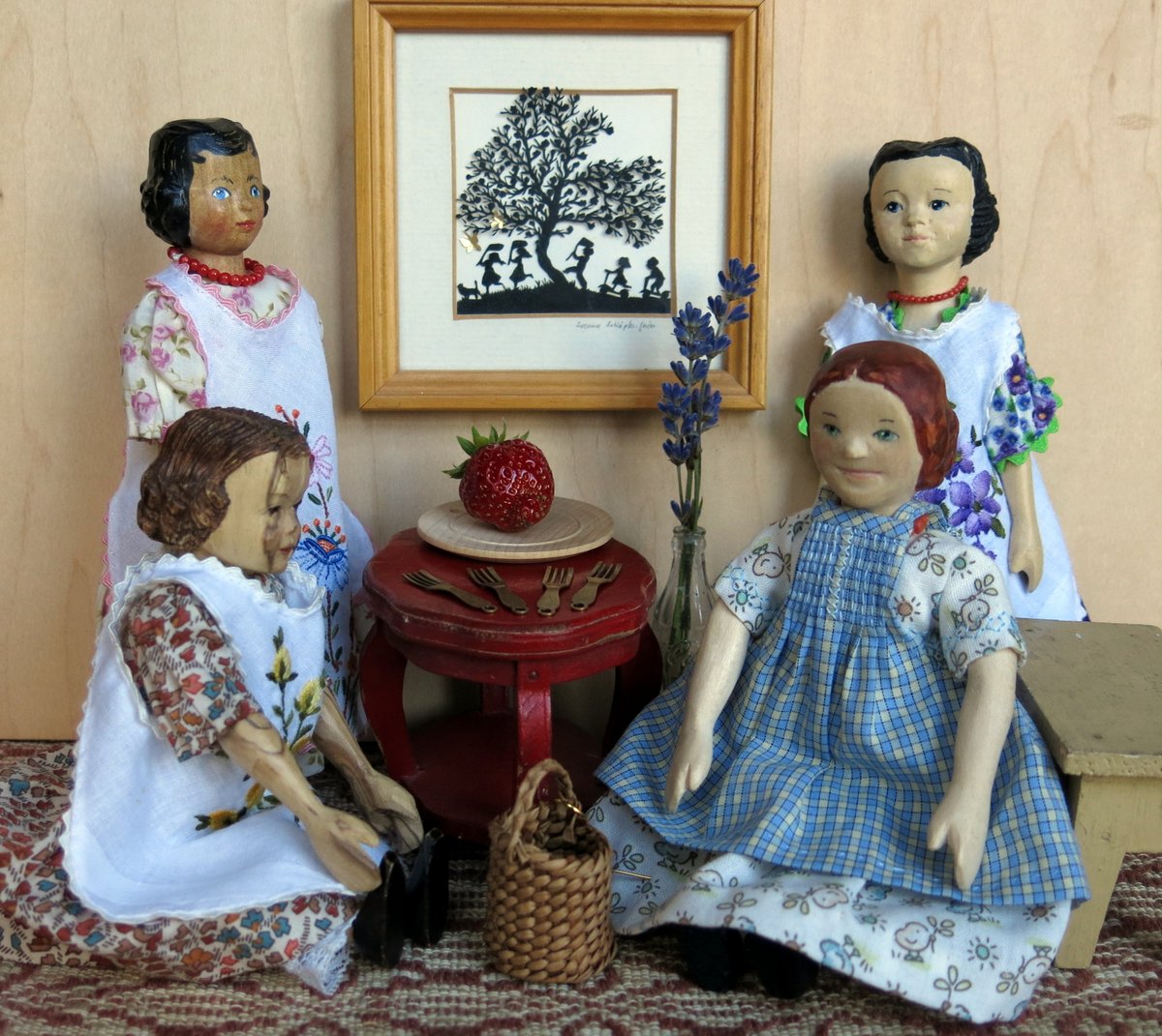 Rose and Hattie are trying not to look too pleased with themselves – Hattie is proud of herself for coddling the strawberry along to this state of perfection, but doesn’t want to jinx the rest of them, and Rose is feeling slightly guilty for being one of only four Hittys selected to enjoy the strawberry. Patience and Eugenia are always a little worried about everything.