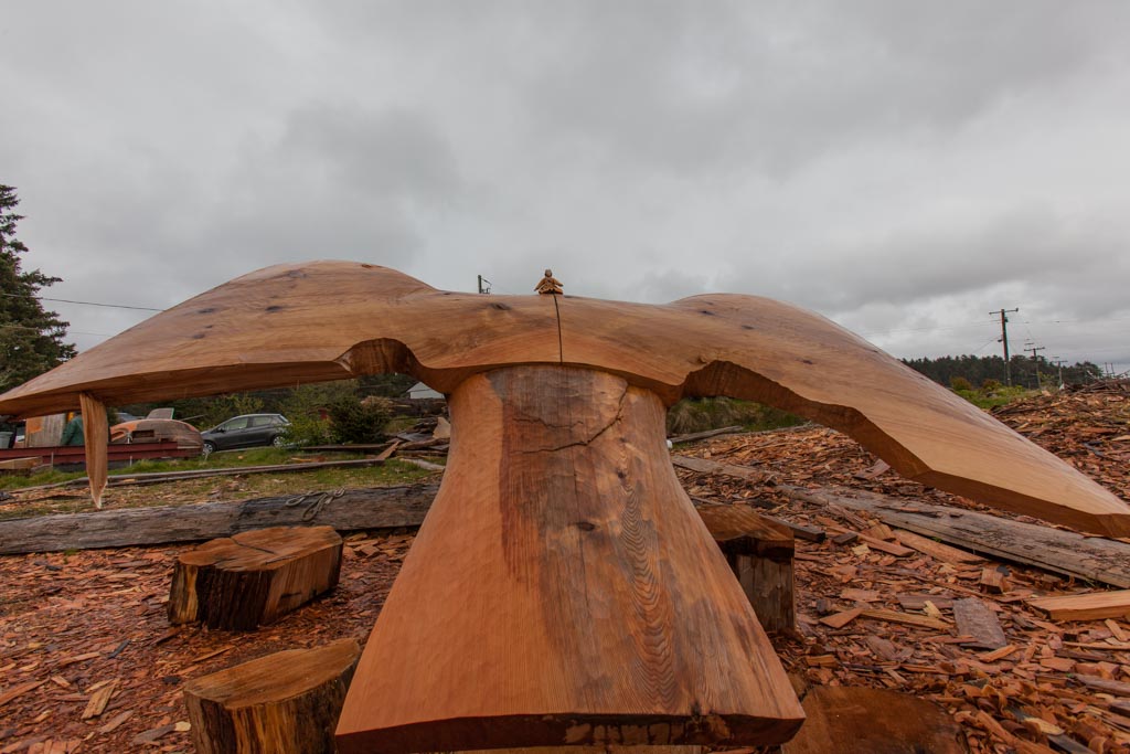 She happily watched the carvers create different textures in the cedar, which were accentuated by the reflected light.