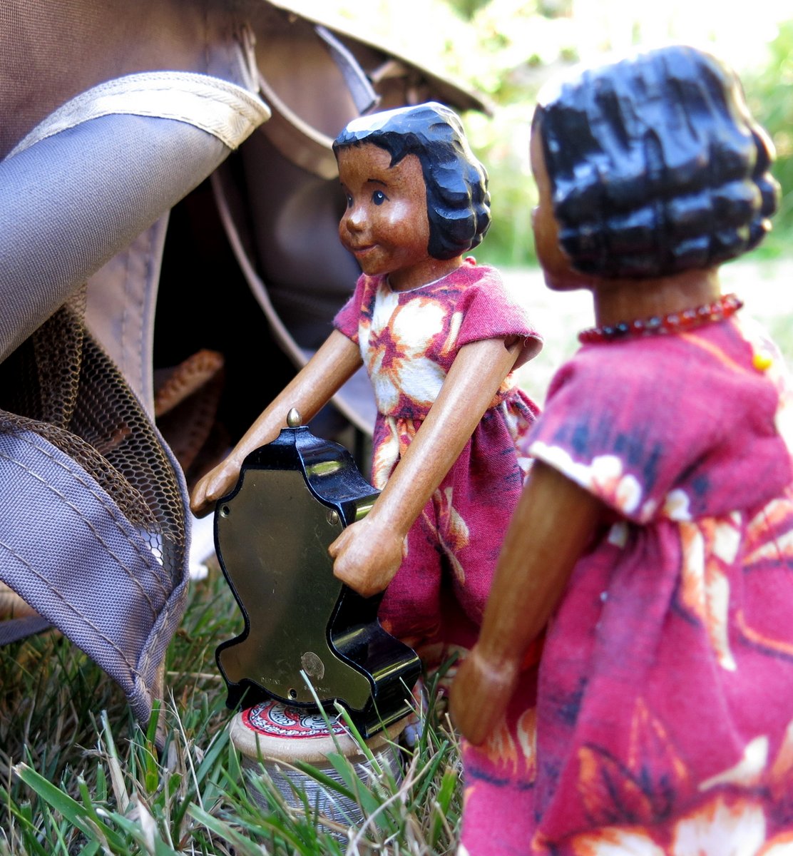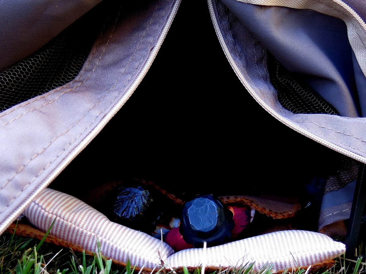 Opal and Agathe are planning a midnight adventure!!! The other Hittys didn’t care to hear them clattering around at that hour, so they are hauling their supplies out to the tent in the back yard…blankets, pillows,