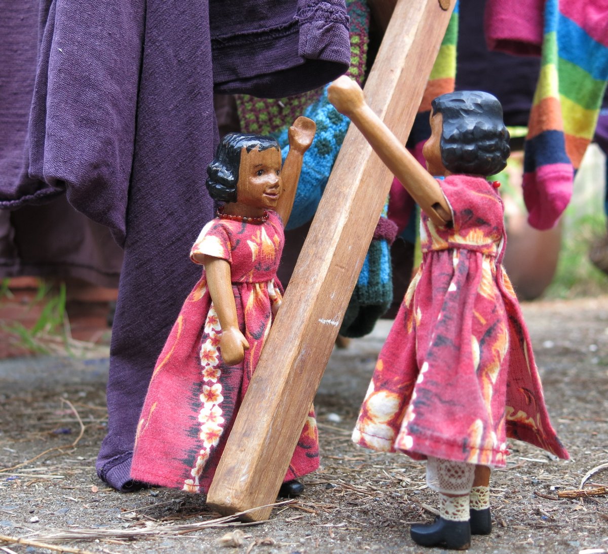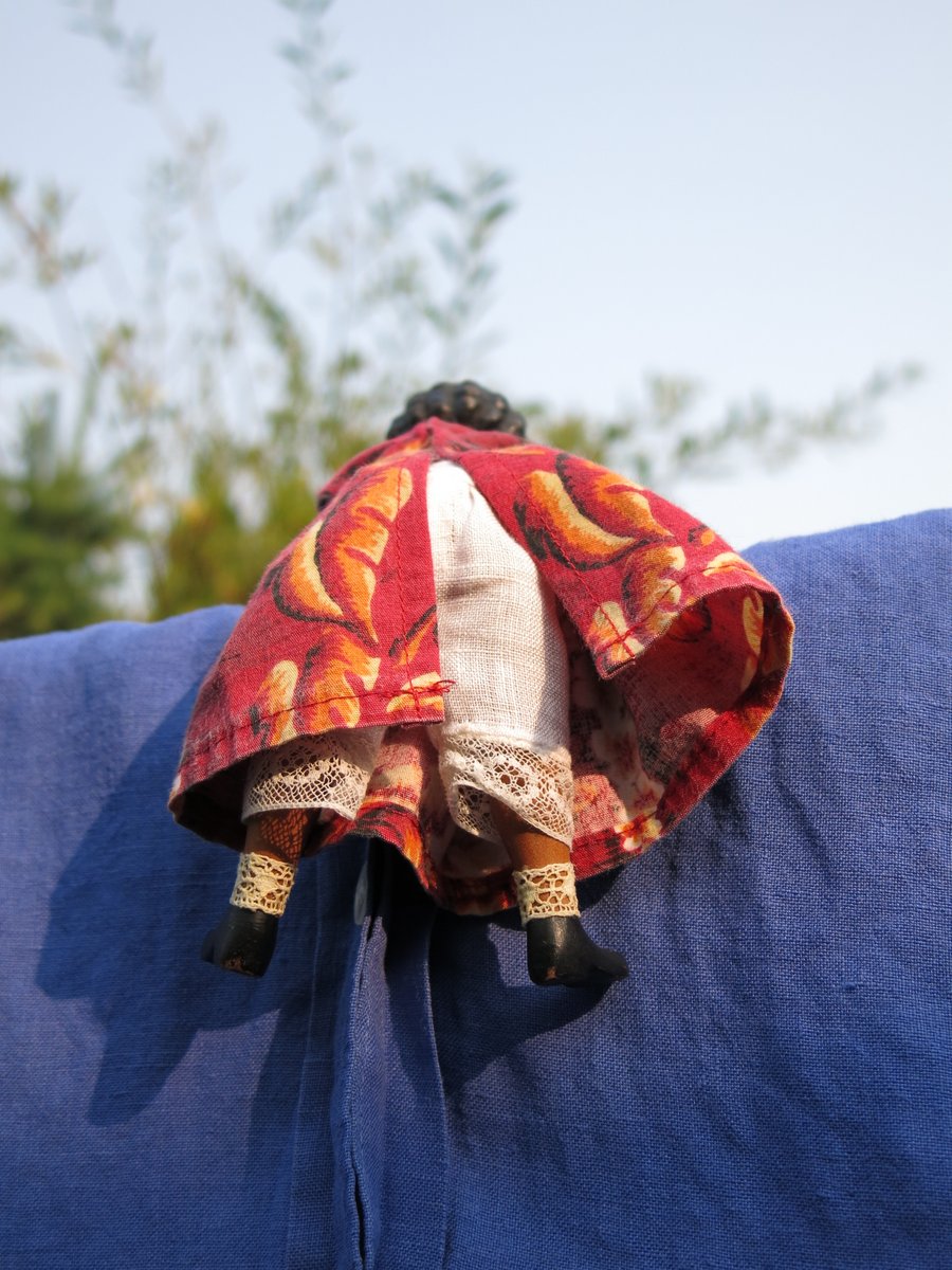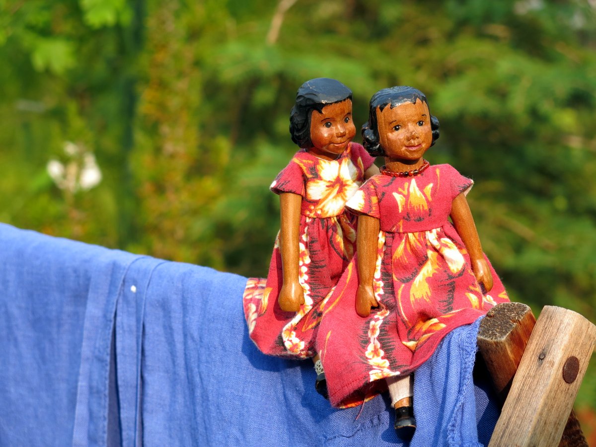 The wind has shifted, and though the forest fire smoke is still present, it is higher up, and more of a haze. This gives the Quimper Hitty Human the chance to hang the laundry outdoors for the first time in many days, and gives Opal and Agathe a brilliant idea!