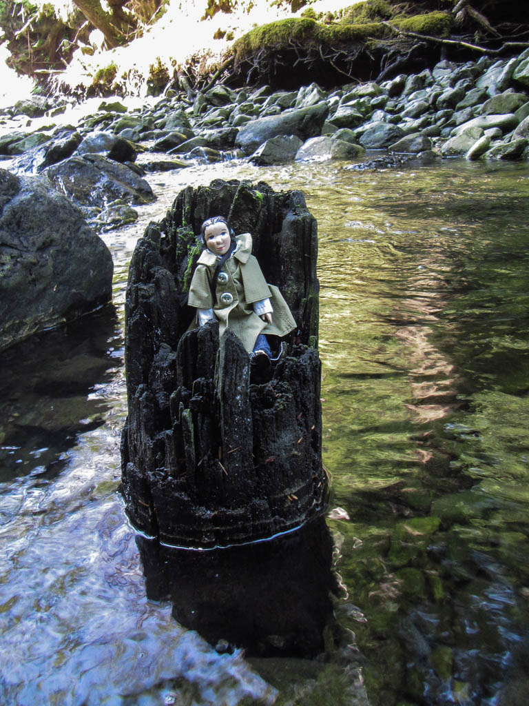The creek was wide and deep – Tansy was glad of this handy stump to rest in half way across!