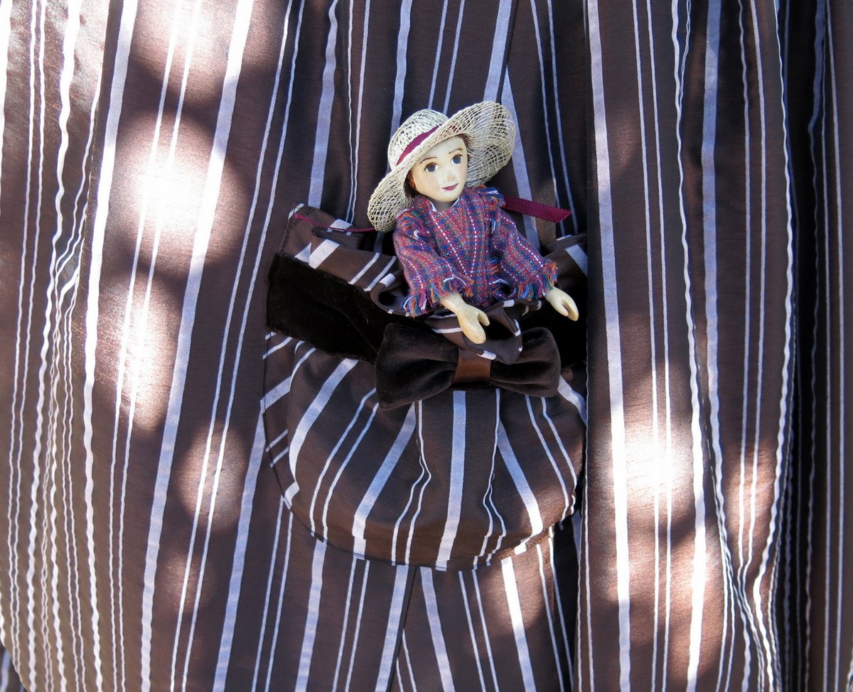 • Constance had been nagging me to photograph the in-progress buttonholes all year, but I never did…she was very charmed to get a little pocket-ride – I think Hittys and Pockets go very well together!