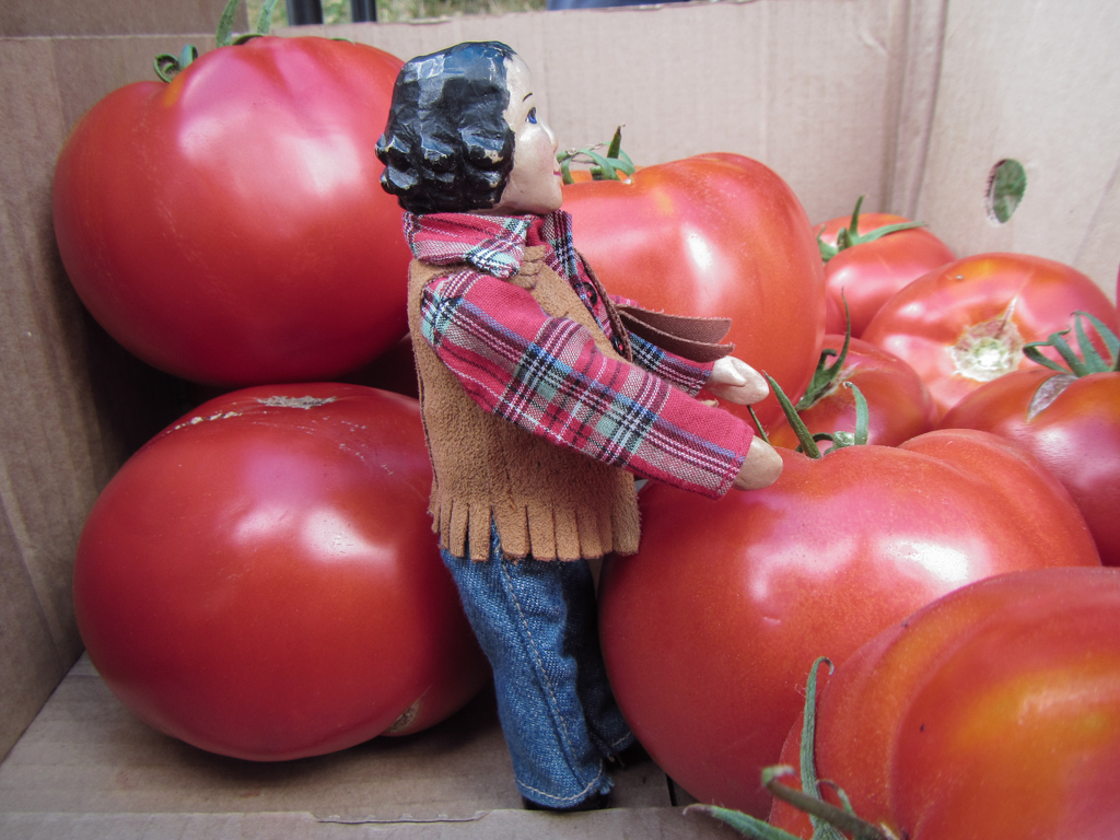 Tansy has gone off on another jaunt with her favourite photographer.  They are doing Archaeological work on Quadra Island during the week, and visiting the farmer’s market on the weekends.  Tansy found a plate of tomatoes.