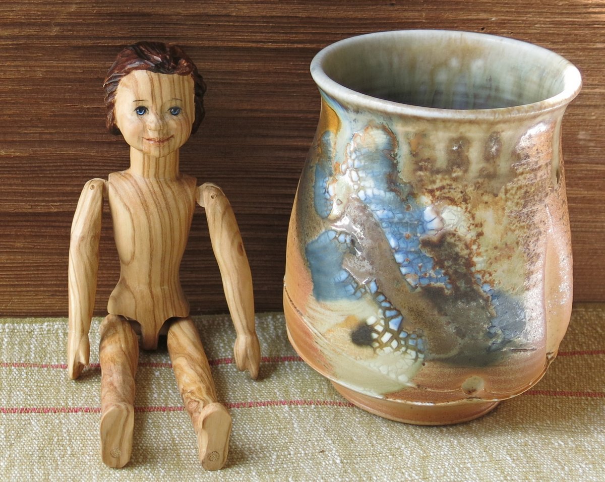 Gráinne’s name can be anglicised as Granya, but she prefers the Irish spelling.  She was very glad I dug some seafaring clothes out of the Hitty wardrobe, because she’s named after a famous 17th century pirate, the redoubtable Gráinne O’Malley (click on the name to read the Wikipedia entry).  Thanks so much to Janet Cordell, an outstanding carver and my teacher last week (click on her name for her website), and to tc Vollum who generously put us up and put up with us while dolls emerged from lumps of wood (click on her name for her website).