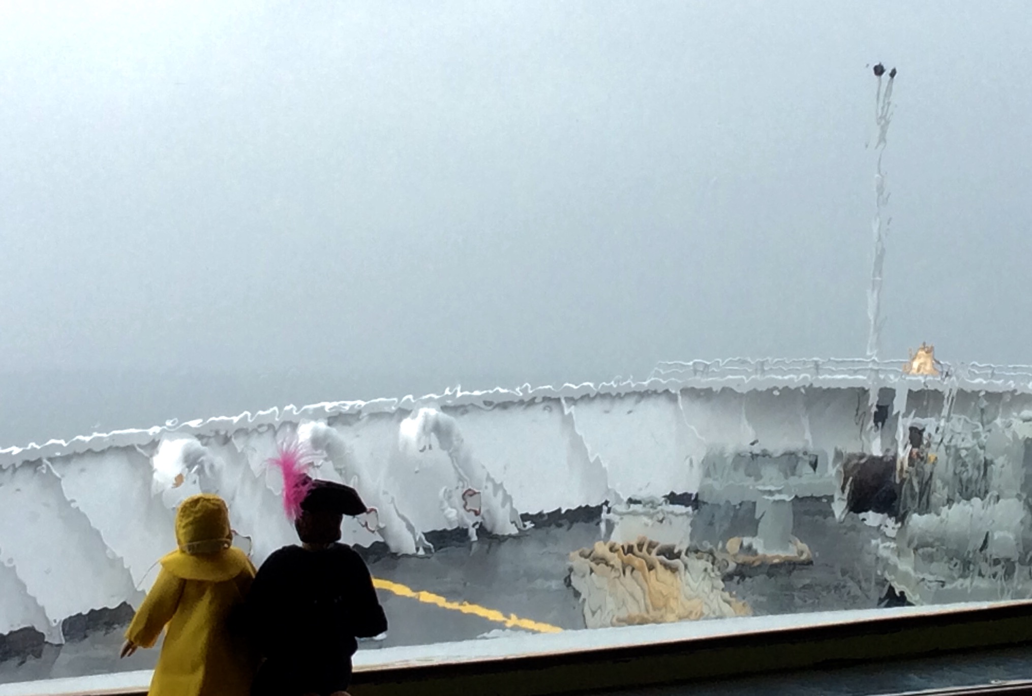 When the rain began bucketing down, they retreated into the inside lounge to wait until time to disembark.