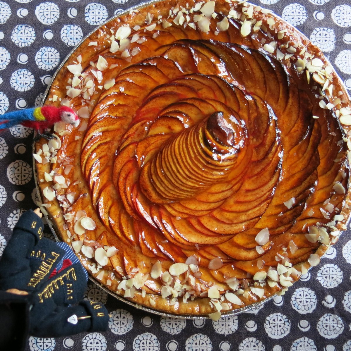 what a marvelous desert. how clever of you to have the intrepid Grainne on guard duty! with her trusty parrot of course. happy Canadian Thanksgiving to all in the Quimper household!