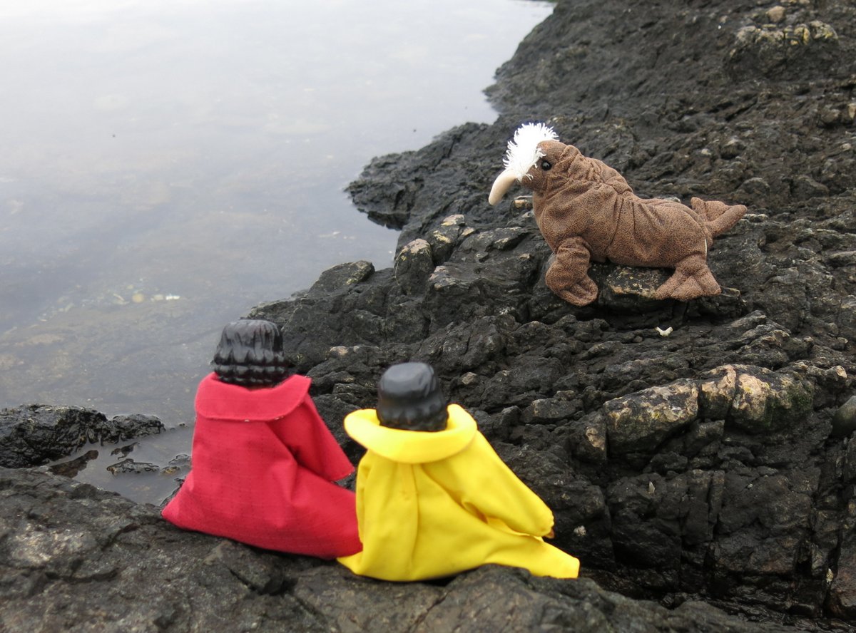 The girls were thrilled to find a lost and mournful walrus on the rocks…
