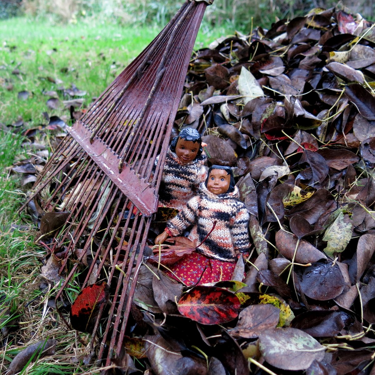 • My preferred method for dealing with leaves is to wait until the first big fall windstorm, when they miraculously vanish! The Hittys like it when I rake though, they have such fun in the leaf piles!