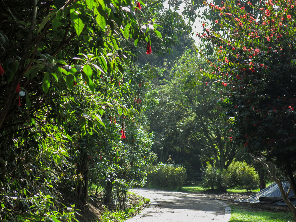 A little further down, we walked along a path with giant fuchsias on one side and red bottlebrush plants on the other.