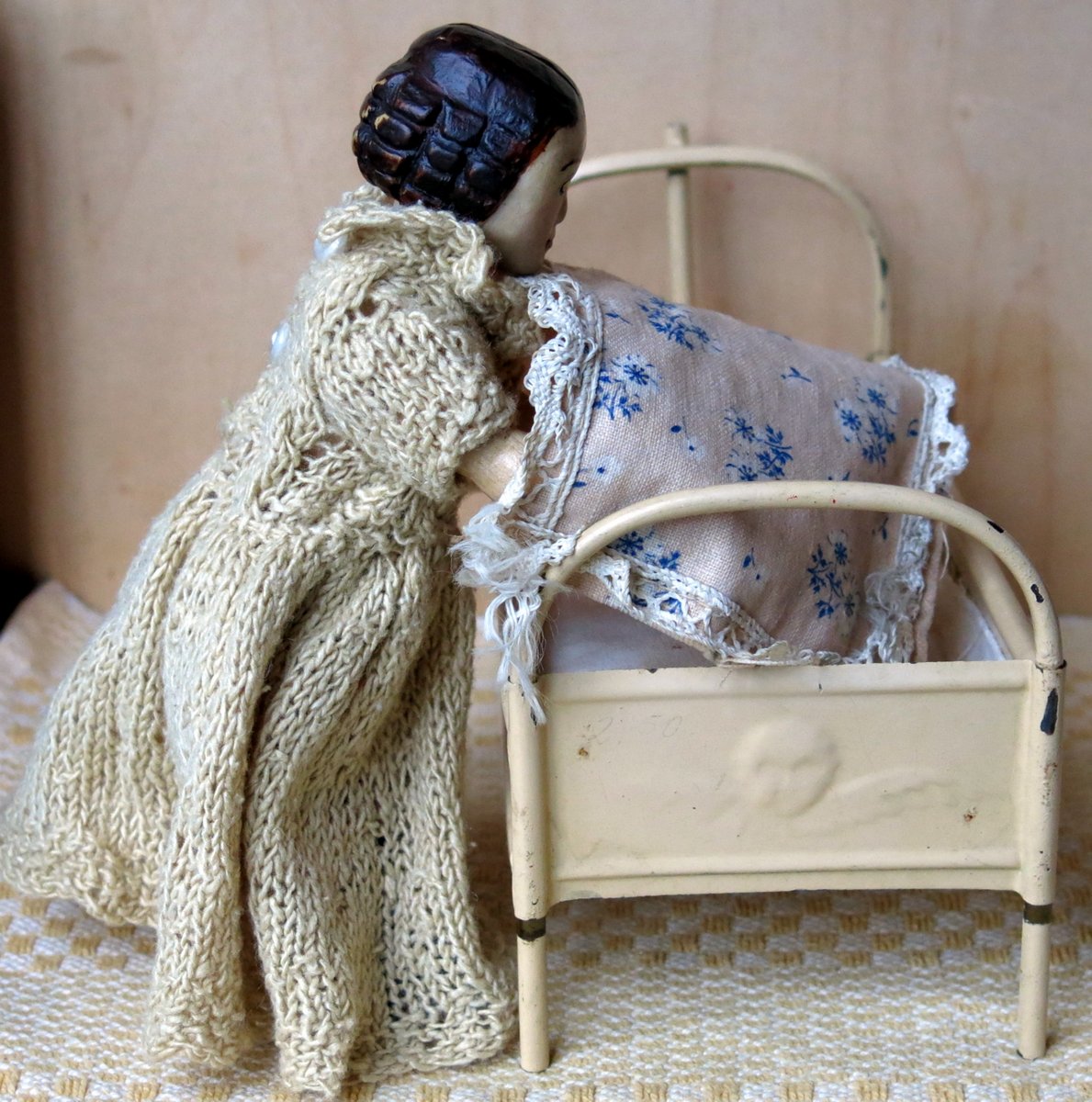 The only problem is that the denizens of the Quimper Hitty cupboard are all too big to fit comfortably in the bed…