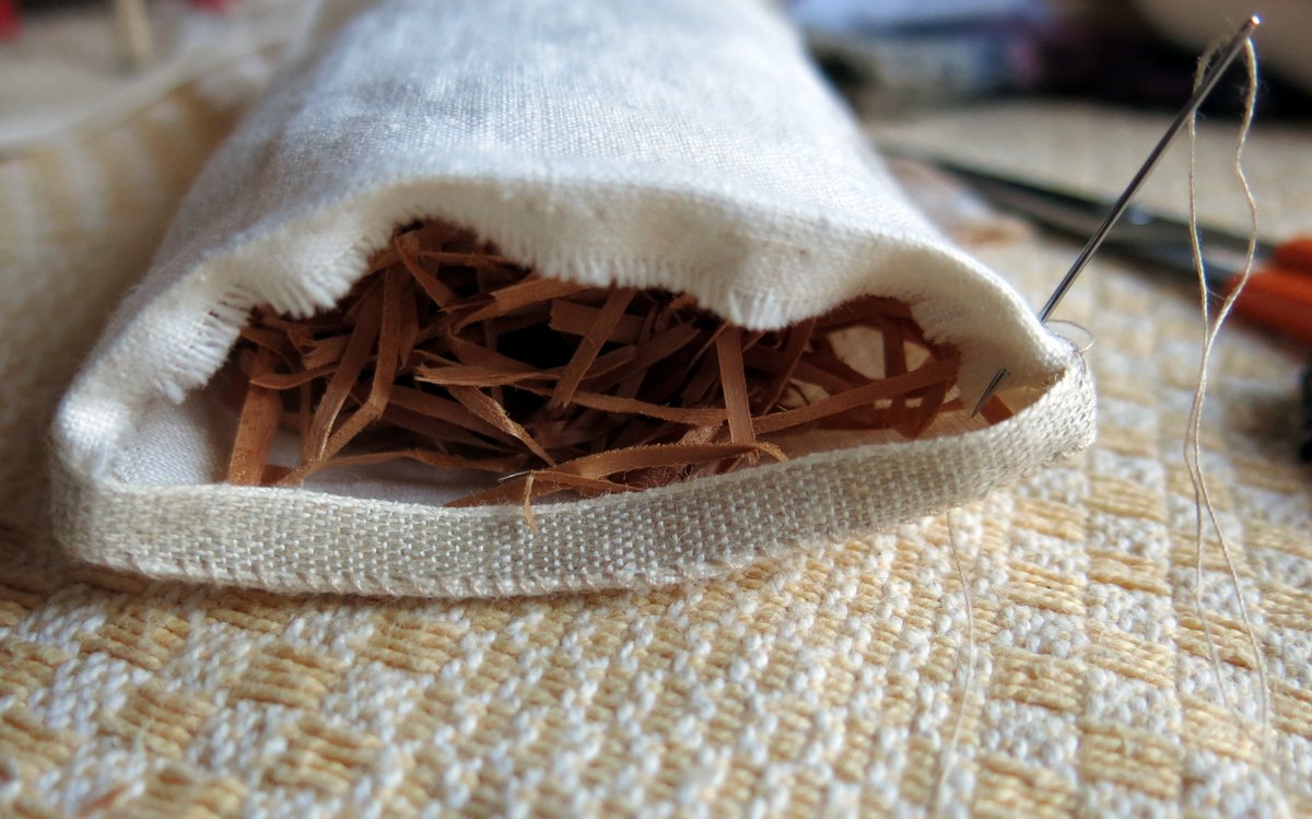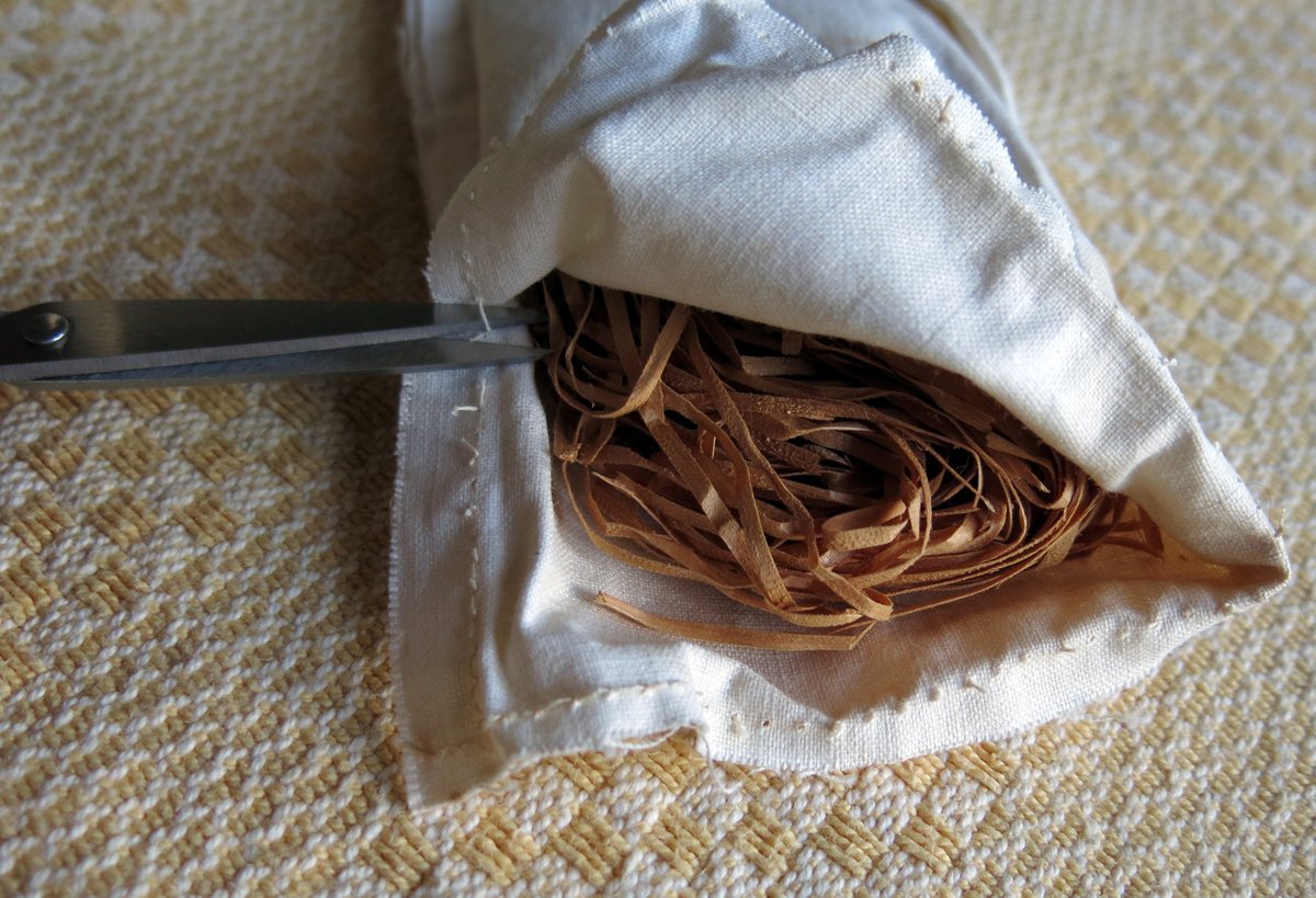 The original wood wool is being re-used, but I teased it out a bit to spread it more evenly and make less lumpy mattress (Constance says thank you).