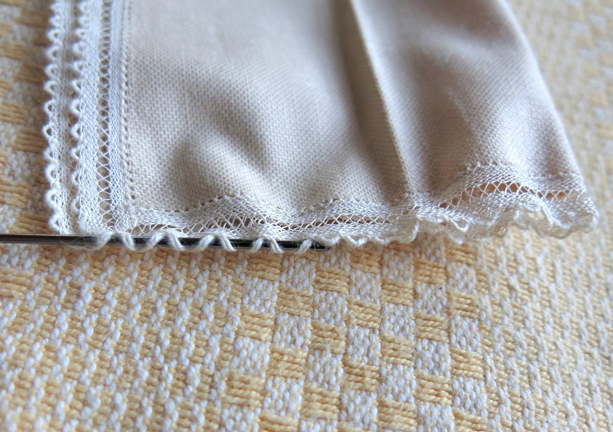 …and took the lace off the coverlet. I washed all the pieces separately, and air-dried them flat on the countertop.