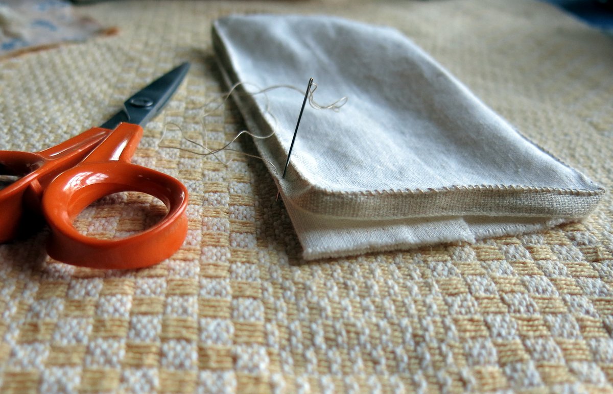 I folded the cloth in half along the long edge, and threaded the wire through the conveniently placed existing looped edging.