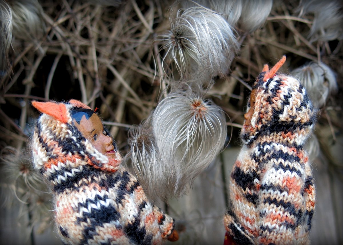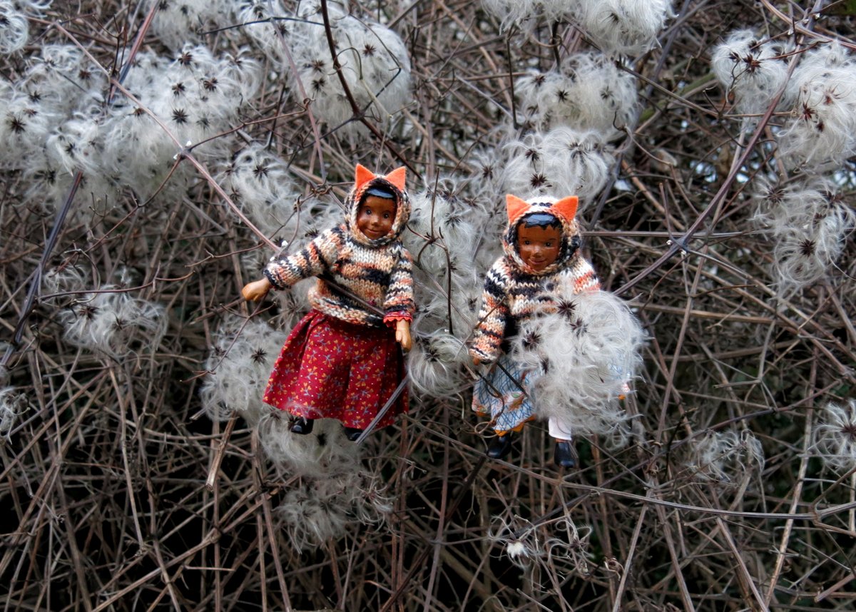 1. Meow!! What darling little cat girls. (Ilove those sweaters!!!) And your clematis ..mine have some fluffs but the fluffs are not pretty white fluffs! Great pics…as usual.