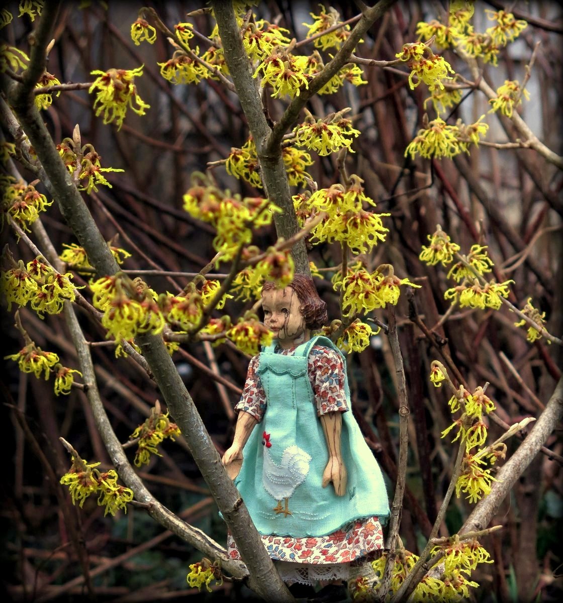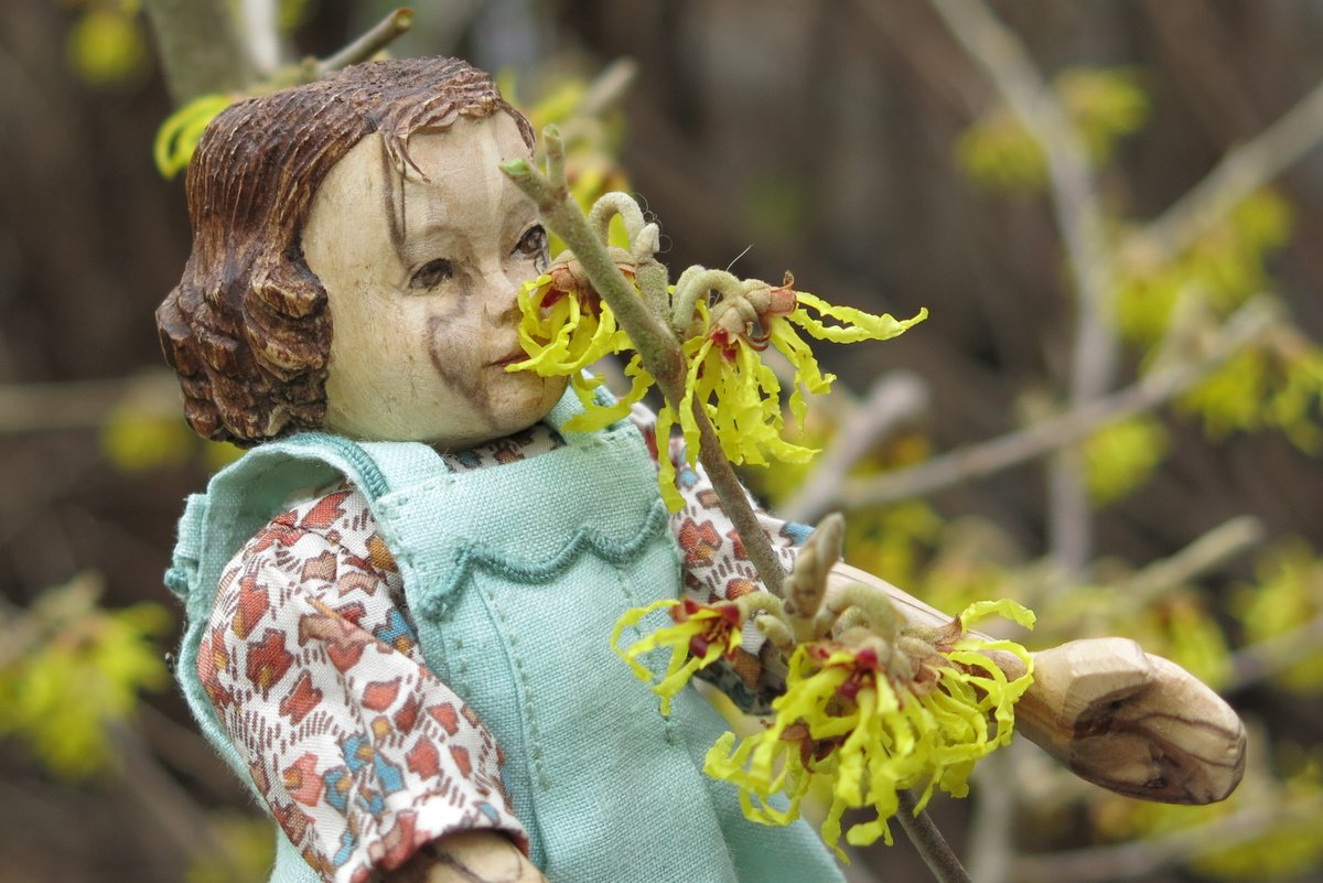 I love witch hazel. Ours start blooming in late December and make the air smell wonderful for a couple months. They’re such a wintertime gift-I should take the dolly crowd down to the creek to visit!