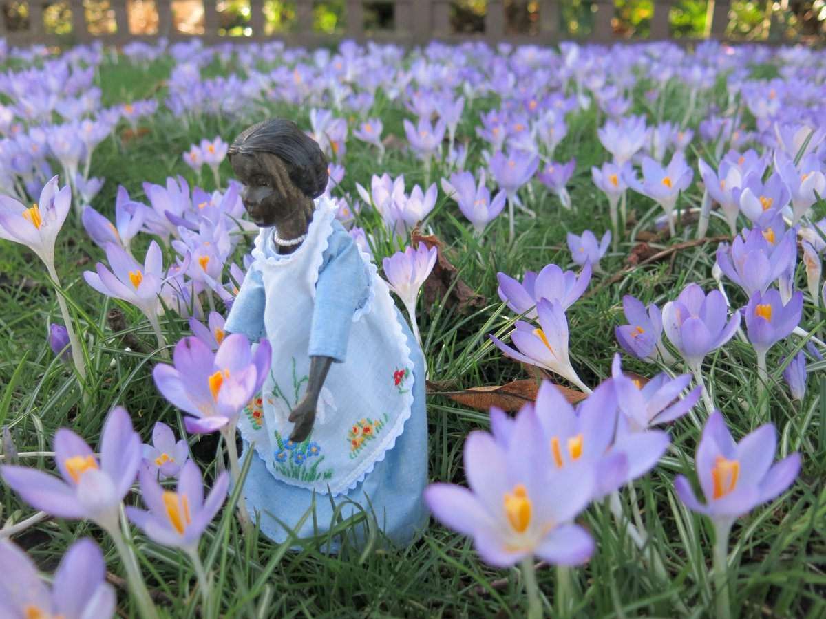 Perdita seems to absorb the tranquil beauty of places like this, and it makes her a soothing Hitty! Perhaps some of the more rambunctious Quimper Hittys could use similar floral therapy!