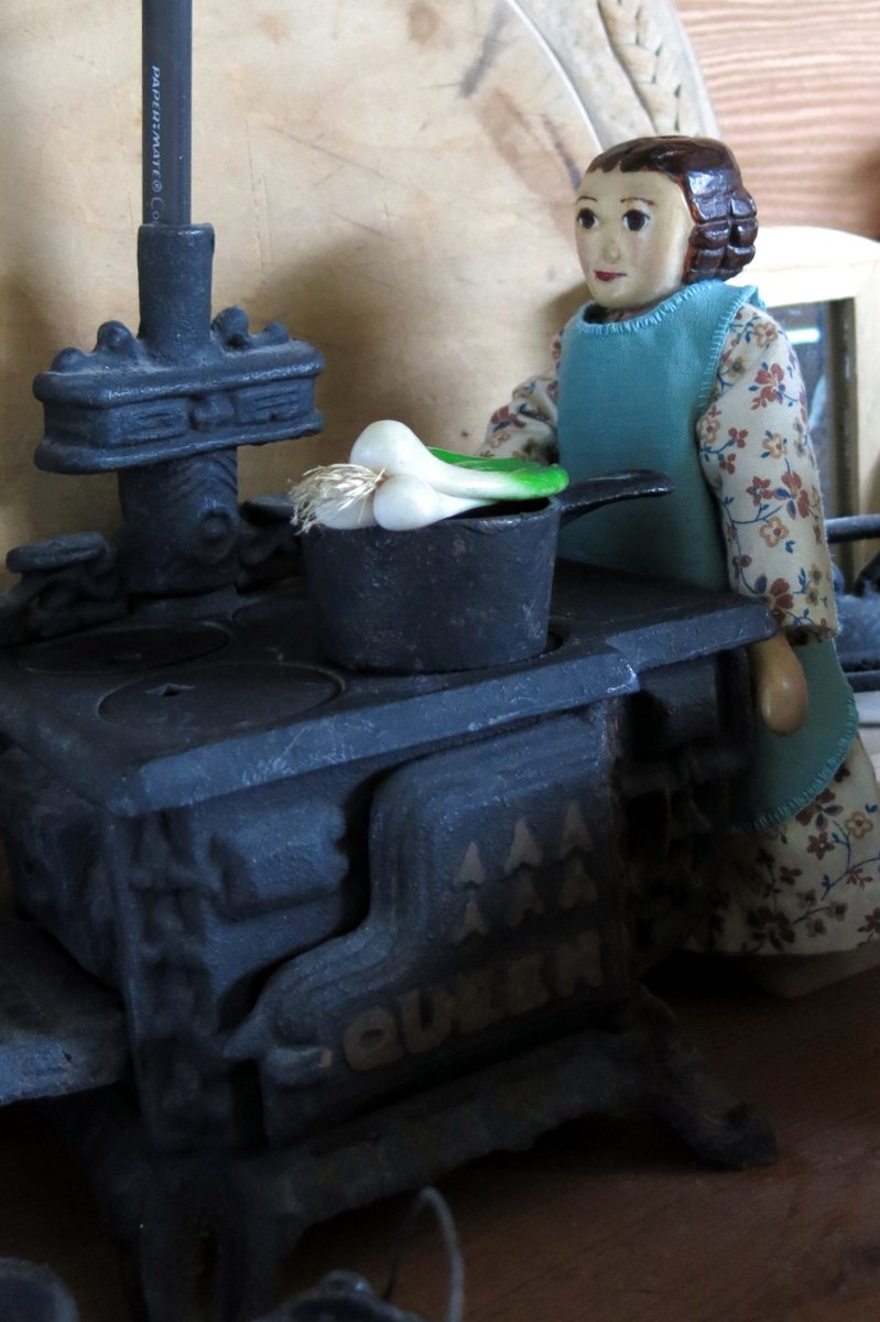 …and Constance with her leeks in the kitchen making Cawl Cennin.