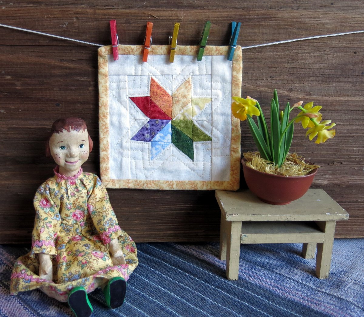 2. Oh, the mini quilt looks so perfect there. I love to see the quilts I make in their happy new homes! What a lovely blog, your dolls are amazing. just like you. I am so glad we connected.
