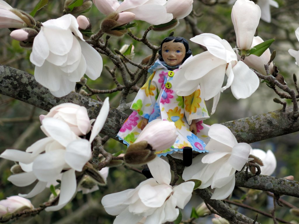 She is happy everywhere she goes, but was just blissful in these beautiful blossoms! I hope Sophie will sit in your Magnolia when it blooms!