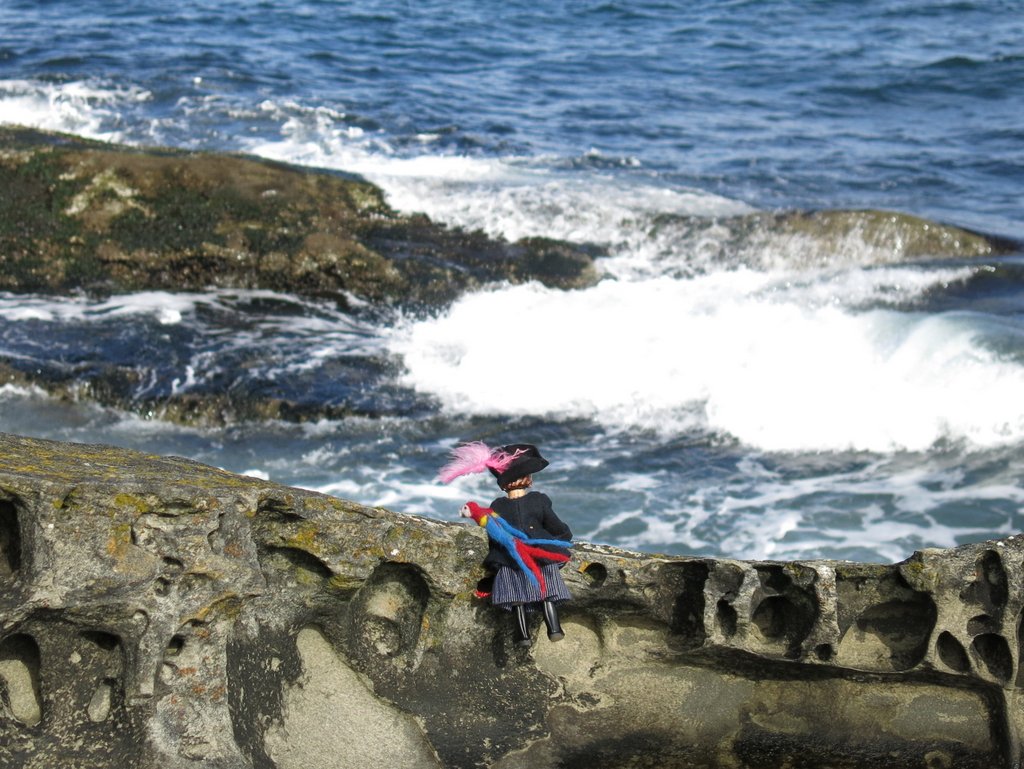 Our Edith Point trek was quite a distance for small booted wooden legs, but Gráinne kept up, and kept her eyes open for piratical opportunities.