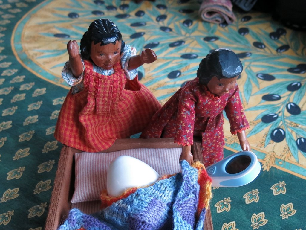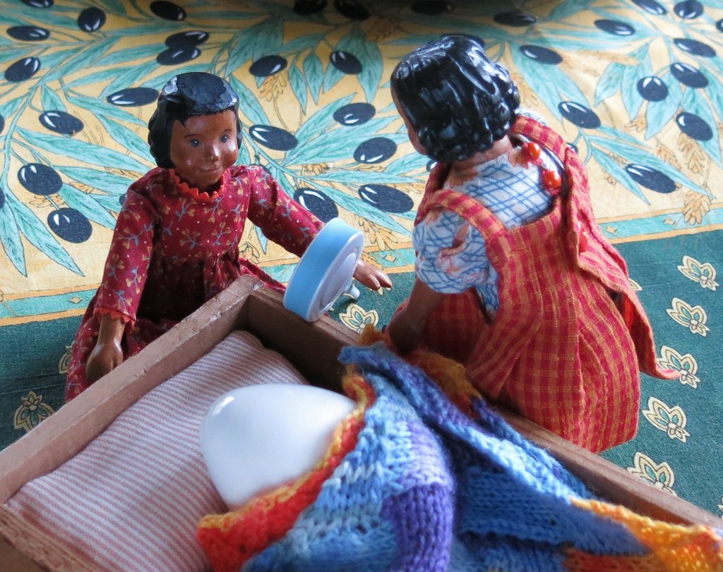 …and they are busy begging Rose to knit a pink croc baby layette.