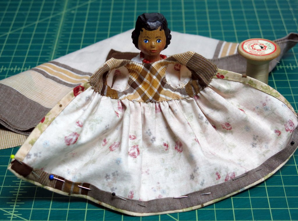 So the human whipped up a little dress, with bodice and hem lining made from a gentleman’s handkerchief.