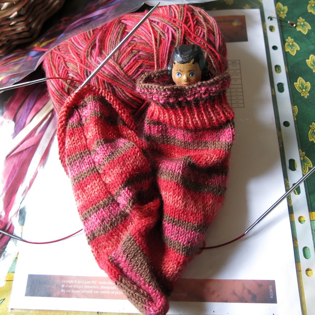 Unfortunately the Quimper Hitty human didn’t have a dress organised for her to put on so she hid in the current Hitty sleeping bag project…