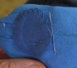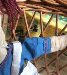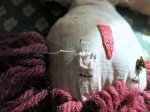 Eva and I were good friends,  she died a few years ago (aged in her nineties). Last year her children gave me this Raggedy Ann and another one of Eva’s dolls.  I was so happy to give the doll a home, for the memory of Eva, and because she is obviously completely infused with love.  Below is a gallery of pictures showing the process of mending Raggedy’s eye and dress.  Click on any image and navigate forward and back using the arrows at the sides of the image.