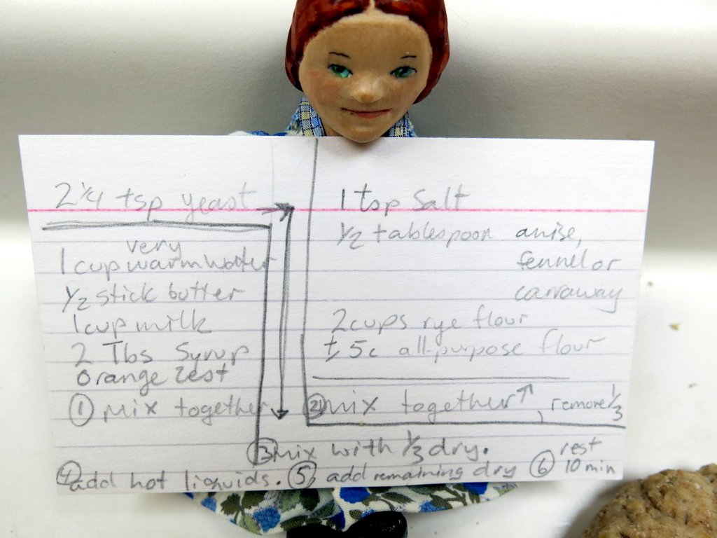 Hatty has been baking Swedish hard tack… I wrote the recipe down as dictated over the phone from my mother, so it is a little confused-looking. The other side of the card says: