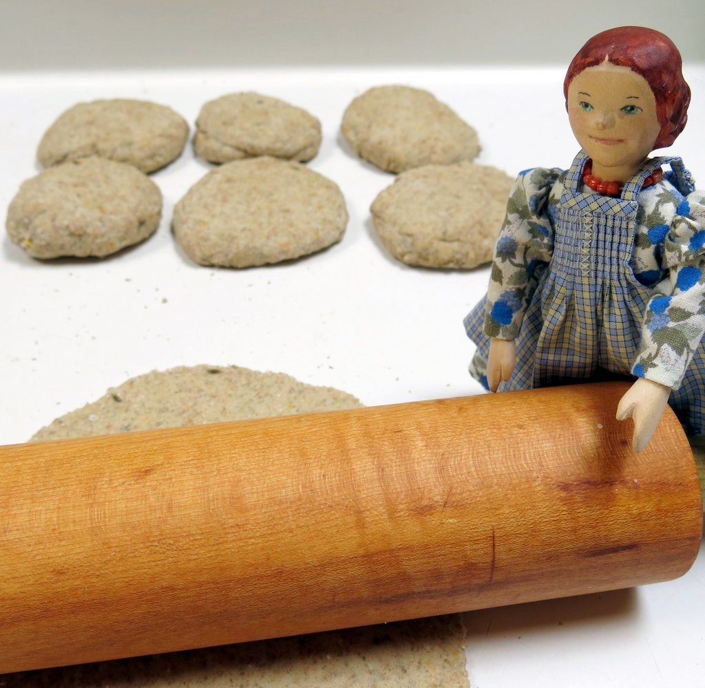 If you don’t have an awesome Swedish or Finnish rolling pin, you can prick the flat rounds with a fork to dimple it. In the old days there would be a circle cut out of the middle of the flat bread, so the breads could be stored in the rafters on poles.
