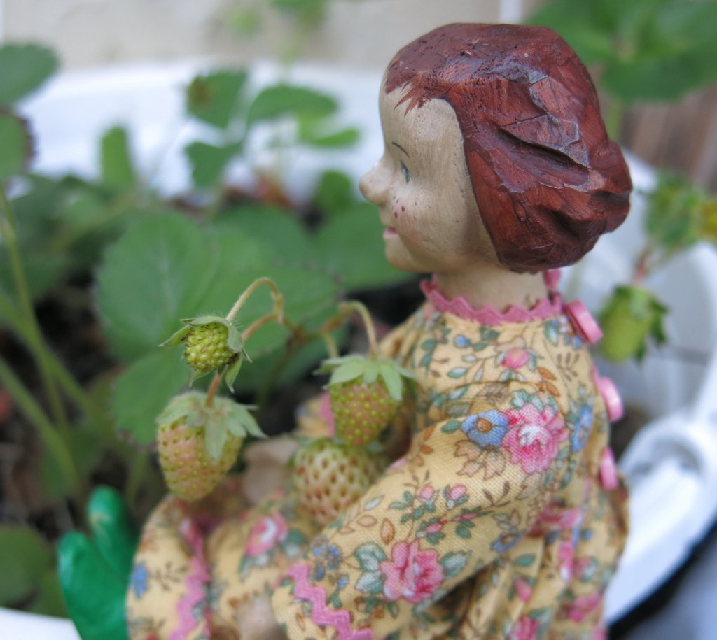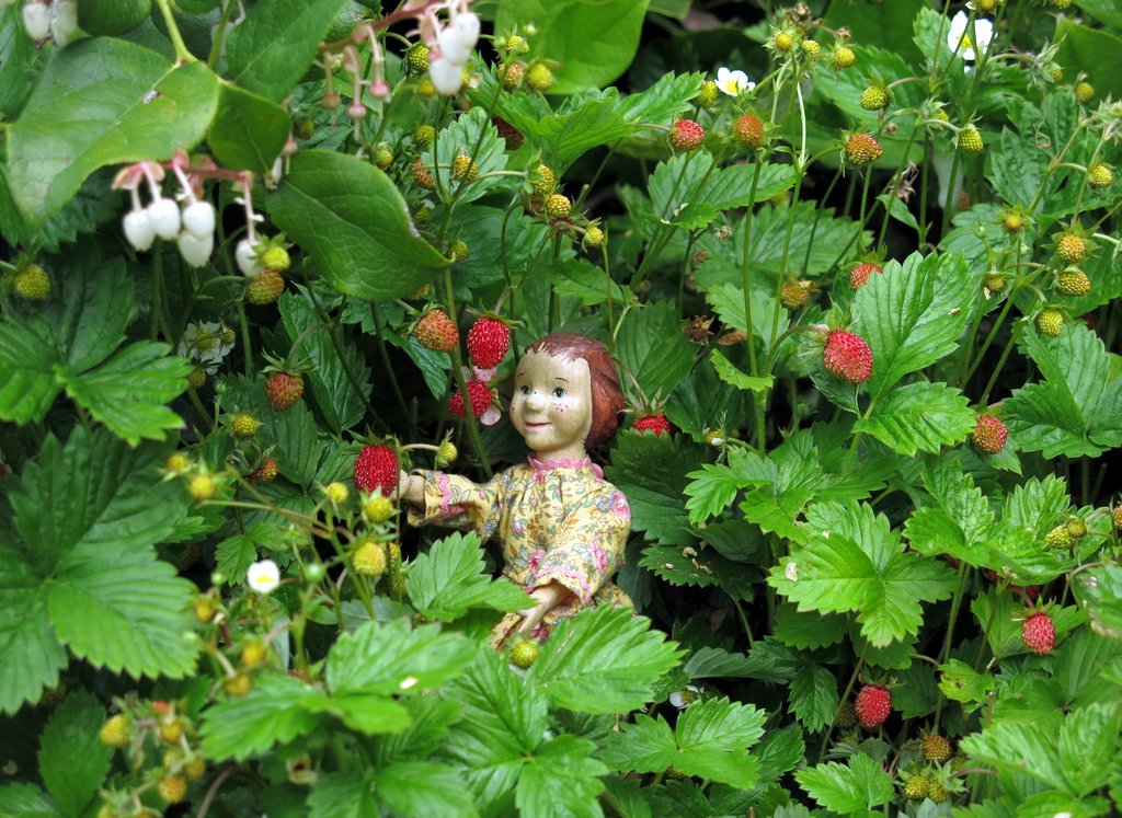 aha, we just purchased some strawberries ourselves. Carrot Soup looks very much at home in that patch of wild berries. Your girls are such excellent foragers.